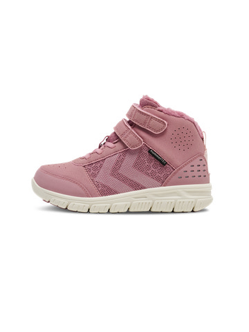 CROSSLITE WINTER MID TEX JR er lun og hyggelig og designet med familiens mindste i tankerne med en overdel i mesh, der har overlays i kunstruskind, samt hummelTEX membran for at bevare en fast form og struktur, mens skoen stadig er åndbar og fleksibel. Denne hummel® sneaker har også en superlet EVA mellemsål samt elastiksnørebånd og klipbare velcrolukninger, så pasformen bliver perfekt. Refleksdetaljer sikrer øget synlighed i svag belysning. Denne sneaker har en normal til bred bredde. Når du vælger skostørrelse til dit barn, anbefaler vi 1 til 1,5 cm i voksetillæg.