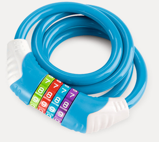 Denne 120 cm lange kombinationslås fås i tre friske farver og er perfekt til børn. De store, letbetjente drejehjul gør det enkelt at indstille koden, og den 10 mm tykke låsekabel giver god og pålidelig beskyttelse til korte ture og stop undervejs.