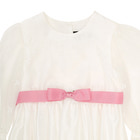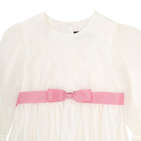 Dåbssløjfe i riflet satin som bindes på ryggen. Den forknyttet sløjfe fæstnes foran i taljen med medfølgende sikkerhedsnål. Bredde 3 cm.