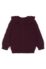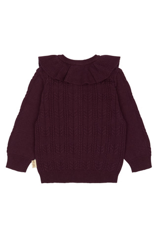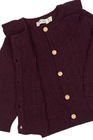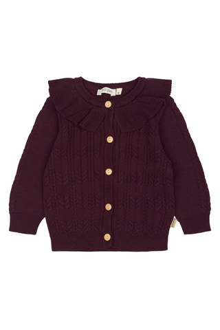 Denne fine cardigan fra Petit Piao er strikket med et elegant mønster og byder på mange smukke detaljer. Rundt om halsen prydes den af delikate flæser, som tilføjer et feminint touch. Cardiganen lukkes med dekorative knapper i naturligt træ, og alle kanter er afsluttet med brede ribkanter, der giver et flot og holdbart finish. Den er fremstillet i en blød og kraftig bomuldsstrik, som både føles behagelig og holder formen flot.