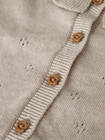 kundeservice@babysam.dkDiame Cardigan fra NAME IT er et skønt valg til de mindste, hvor komfort og stil går hånd i hånd. Cardiganen er strikket i blød, økologisk bomuld, som føles behagelig mod barnets hud og samtidig er et mere bæredygtigt valg. Den fine Peyote Melange farve giver et roligt og klassisk udtryk, der passer til både hverdag og festlige lejligheder. Cardiganen har en sød, ribbet krave, der tilføjer et ekstra pift til designet, og de små, dekorative knapper i trælook gør det nemt at tage den af og på. De diskrete hulmønstre i strikken giver et let og feminint udtryk, mens ribkanter ved ærmer og bund sikrer en god pasform. Cardiganen er ideel som et ekstra lag på kølige dage og kan nemt kombineres med både bukser, kjoler og leggings. NAME IT har fokus på komfort og kvalitet, og med Diame Cardigan får du et stykke tøj, der både er praktisk og pænt – perfekt til aktive børn, der elsker at bevæge sig og udforske verden.