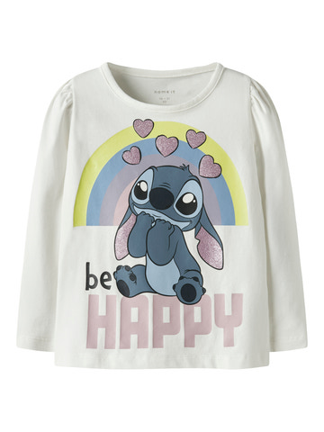 Diana Stitch Trøje - Cloud dancer fra NAME IT er en skøn og komfortabel trøje til børn, der elsker Disney-universet. Trøjen er lavet i blød bomuld, som føles behagelig mod huden og sikrer god komfort hele dagen. Det charmerende Stitch-print med glitrende hjerter og teksten "be HAPPY" giver et legende og farverigt udtryk, der vil bringe smil frem hos både børn og voksne. Trøjen har lange ærmer og en klassisk rund hals, hvilket gør den ideel til både hverdag og hyggelige stunder. Perfekt til at sprede glæde og god energi i garderoben!