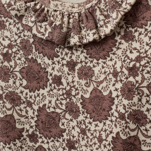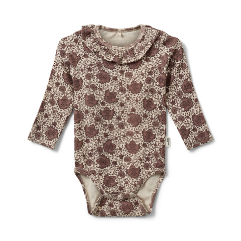 Dicte Body fra Petit by Sofie Schnoor er en smuk og komfortabel langærmet body, designet med omtanke for både stil og funktionalitet. Den er fremstillet i en blød bomuldsblanding, der føles behagelig mod barnets hud, og har fine detaljer som flæser ved skuldrene.