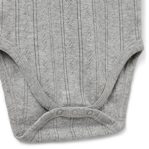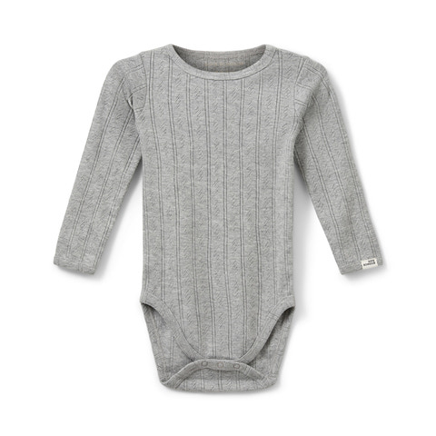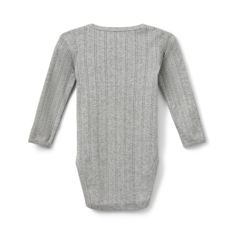 Giv dit barn en body, der kombinerer komfort med et elegant udtryk. Denne fine body med hulmønster er lavet i en blød og åndbar bomuldskvalitet, der føles skøn mod huden og giver et let og luftigt look. Det delikate mønster tilføjer et strejf af nostalgi og charme perfekt til både hverdag og sørlige anledninger.