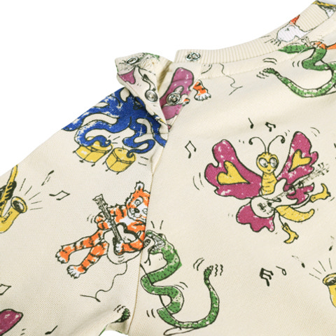 kundeservice@babysam.dkDisc Sweater fra Molo er en skøn og farverig sweatshirt, der bringer glæde til garderoben. Sweateren er fremstillet i blød, økologisk bomuld, som føles behagelig mod huden og er et bæredygtigt valg for både børn og miljø. Det fine confetti rainbow-print med små, farverige prikker gør trøjen ekstra sjov og livlig. Ribkanter ved ærmer, hals og bund sikrer en god pasform, mens trykknapper på skulderen gør det nemt at tage trøjen af og på. Perfekt til både leg og afslapning, og kan nemt styles med både bukser og nederdel.