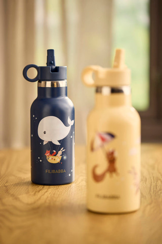 Den er dekoreret med magiske illustrationer, der vækker fantasi og eventyrlyst. Med sin kompakte størrelse og lette vægt er flasken perfekt til små hænder.
