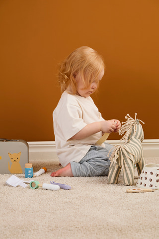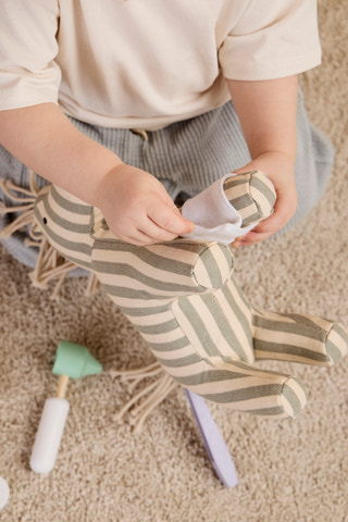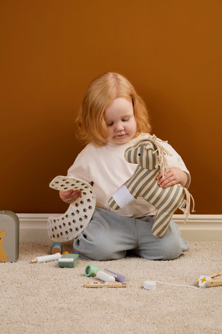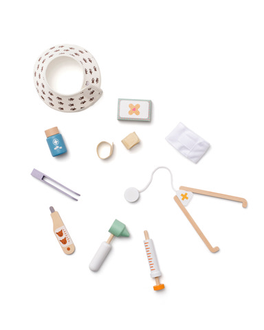 kundeservice@babysam.dkTid til at se dyrlægen! Forbered dine udstoppede dyr til deres årlige kontrol. Dette dyrlægesæt er perfekt til børn, der elsker at tage sig af deres udstoppede dyr. Sættet indeholder en sprøjte, en medicinflaske, fiskeformet "kattemad", et stetoskop, et termometer, en pincet og en stofhalsbånd for at forhindre dyr i at slikke deres sår efter operationen. Der er også et øreinspektionsværktøj, et otoskop, til at kontrollere dyrenes helbred. Alle dele får plads i tasken, hvilket gør det nemt at tage dyrlægeklinikkens udstyr med, hvor end legen fører dig hen. Sættet opmuntrer børn til at påtage sig rollen som dyrlæge og giver dem mulighed for at udforske omsorg og ansvar, mens de engagerer sig i kreativ leg med deres dyr.