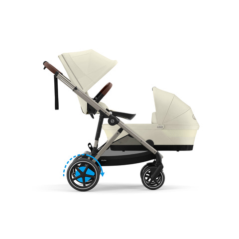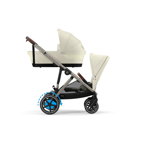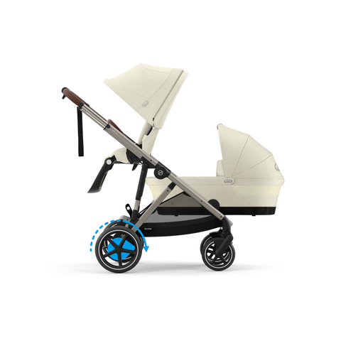 Cybex e-Gazelle S er en innovativ klapvogn designet til at gøre hverdagen lettere for moderne familier. Glid ubesværet op ad de stejleste bakker og over det mest ujævne terræn med e-drevet opadgående og ujævn overfladestøtte, der nemt styres af et brugervenligt håndtag. Klapvognen er udstyret med e-powered støtte, der gør det nemt at navigere op ad bakker og ujævne overflader. En indbygget funktion, der forsigtigt vugger klapvognen frem og tilbage for at berolige din baby. Fra fødslen og op til ca. 4 år.