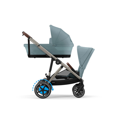 Søskendesæde: Har familien fået vokseværk og der nu er brug for en søskendevogn, eller det kan også være man ønsker en smart tvillingvogn? Med dette søskendesæde kan man udvide sin Gazelle S vogn, til en smart dobbeltvogn hvor børnene sidder i forlængelse af hinanden, så fylder man ikke i bredden med sin vogn. Gazelle S-sædet er nemt at fastgøre i både forældre- og verdenspositioner, og matcher din Gazelle S klapvogn til perfektion. En sele med ét træk hjælper dig med at sikre dit barn på få sekunder – en livredder, når du spænder to!