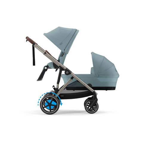 Cybex e-Gazelle S er en innovativ klapvogn designet til at gøre hverdagen lettere for moderne familier. Glid ubesværet op ad de stejleste bakker og over det mest ujævne terræn med e-drevet opadgående og ujævn overfladestøtte, der nemt styres af et brugervenligt håndtag. Klapvognen er udstyret med e-powered støtte, der gør det nemt at navigere op ad bakker og ujævne overflader. En indbygget funktion, der forsigtigt vugger klapvognen frem og tilbage for at berolige din baby. Fra fødslen og op til ca. 4 år.