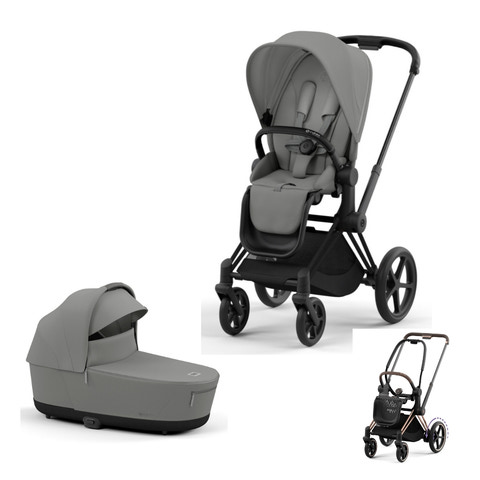 Stellet: Cybex E-Priam stellet har skumfyldte punkteringssikre hjul, hvor forhjulene er drejelige og kan låses fast til ujævnt terræn. Affjedring på alle fire hjul sikrer en behagelig køreoplevelse for både barn og forældre. Stor indkøbskurv, der kan foldes ud for at rumme endnu mere. Maksimal vægt på 5 kg i indkøbskurven. Chassiset har et teleskophåndtag beklædt med luksuriøst imiteret læder, der kan justeres i 4 forskellige positioner. Velegnet til både høje og lave forældre. Chassiset kan nemt foldes sammen med kun én hånd. Sædet kan også foldes sammen med klapvognen, når det vender fremad eller bagud. Rejsesystem, klik blot Cybex-, besafe- eller Maxi-Cosi-babystolen direkte på chassiset. Sædets højde er tilpasset standarden for spiseborde. Bare kør klapvognen hen til bordet, så har du en sikker højstol under dit restaurantbesøg.