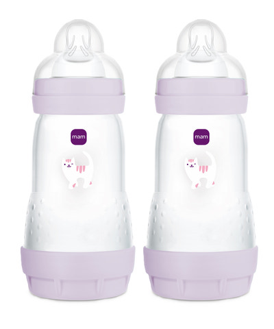 MAM Easy Start Anti-Colic Bottle er designet til at forebygge kolik og andre almindelige problemer som kan opstå ved madning. Det innovative antikoliksystem med en ventil i bunden forhindrer, at der dannes luftbobler i væsken, og hjælper dit barn med at drikke mere afslappet. Den unikke flade form på sutten efterligner moderens brystvorte under amning og giver barnet en velkendt fornemmelse. Det gør det lettere at skifte mellem amning og flaskemadning.