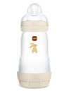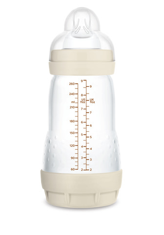 MAM Easy Start Anti-Colic Bottle er designet til at forebygge kolik og andre almindelige problemer som kan opstå ved madning. Det innovative antikoliksystem med en ventil i bunden forhindrer, at der dannes luftbobler i væsken, og hjælper dit barn med at drikke mere afslappet. Den unikke flade form på sutten efterligner moderens brystvorte under amning og giver barnet en velkendt fornemmelse. Det gør det lettere at skifte mellem amning og flaskemadning.