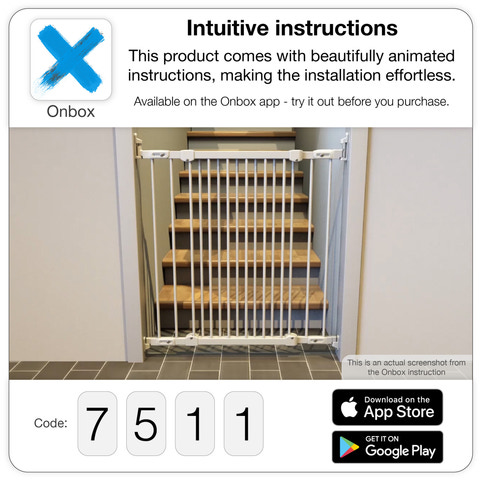 Ved at downloade appen OnBox fra BabyDan til din smartphone kan du få monterings / opsætnings guide ved at taste de første 4 cifre af varenr. - så du er sikker på at gitteret er monteret korrekt.