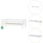 ECO Comfort juniorsengen fra Hoppekids er en sød og praktisk seng i størrelsen 70x160 cm. Den egner sig perfekt som en mellemstation mellem babysengen og voksensengen. Hoppekids laver mange senge og muligheder heriblandt denne enkle og flotte ECO Comfort juniorseng. Med en madras størrelse på 70x160 cm. er denne juniorseng et godt valg når barnet skal ud af tremmesengen og videre til en større, men ikke er helt klar til en voksen størrelse seng. Sengen er en lille fin og hyggelig seng, som danner en tryg base for barnet gennem mange år, og sikre en dejlig natte søvn. Den smarte sengehest gør det let og hurtigt at forvandle sengen fra legeseng til trygt sovested. Sengehesten kan nemlig let tages af eller sættes på efter behov. Sengehesten kan også skrues fast, hvis der er behov for en stærkere eller mere permanent løsning. De store, praktiske skuffer fra Hoppekids er perfekt til opbevaring af sengetøj eller legesager. Skufferne har praktiske gummihjul, så de er lette at trille ud fra under sengen.