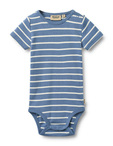 kundeservice@babysam.dkEdvald Kortærmet Body fra Wheat er et skønt valg til de mindste, hvor komfort og funktionalitet går hånd i hånd. Bodyen er fremstillet af økologisk bomuld, som føles blødt og behageligt mod barnets hud, og samtidig er et ansvarligt valg for miljøet. Det klassiske stribede design i blå og hvid giver et tidløst og friskt udtryk, der passer til både hverdag og festlige lejligheder. Den korte ærmelængde gør bodyen ideel til de varmere måneder eller som et lag under andet tøj. Med trykknapper på skulderen og i bunden er det nemt og hurtigt at klæde barnet af og på, hvilket er en stor fordel i en travl hverdag. Wheat er kendt for deres høje kvalitet og fokus på komfort, og denne body er ingen undtagelse. Den elastiske ribkant ved benene sikrer en god pasform, så barnet kan bevæge sig frit og ubesværet. Bodyen kan vaskes igen og igen uden at miste form eller farve, hvilket gør den til et praktisk valg for forældre. Edvald Kortærmet Body er et must-have i garderoben til babyer og småbørn, og den økologiske bomuld sikrer, at du kan klæde dit barn på med god samvittighed.