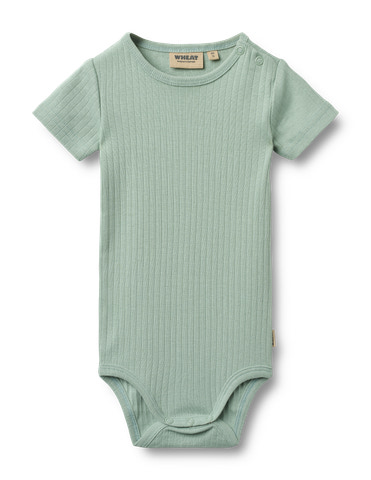 Edvald Kortærmet Body fra Wheat er et skønt basisstykke til garderoben, designet i en smuk Green Pool farve. Bodyen er fremstillet i blød og åndbar økologisk bomuld, som sikrer, at dit barn har det behageligt hele dagen. Den ribbede struktur giver ekstra strækbarhed og komfort, så bodyen følger barnets bevægelser uden at stramme. Med trykknapper på skulderen og mellem benene er det nemt at klæde barnet på og skifte ble, hvilket gør hverdagen lidt lettere for både forældre og barn. Den klassiske pasform og det enkle design gør bodyen velegnet både som inderste lag og alene på varme dage. Wheat er kendt for deres fokus på kvalitet og bæredygtighed, og denne body er ingen undtagelse – den er produceret med omtanke for både barn og miljø. Perfekt til daglig brug og nem at vaske, så den hurtigt er klar til næste eventyr.