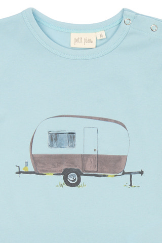 kundeservice@babysam.dkEliah T-Shirt fra Petit Piao i farven Winter Sky er en skøn t-shirt til de mindste, der kombinerer komfort og et charmerende design. T-shirten er fremstillet i en blød og strækbar bomuldsblanding, der sikrer, at barnet kan bevæge sig frit og komfortabelt hele dagen. Den lyseblå nuance giver et friskt og roligt udtryk, mens det fine print af en campingvogn på fronten tilføjer et legende og eventyrligt præg, som børn vil elske. T-shirten har korte ærmer og rund hals, hvilket gør den ideel til både hverdag og leg. De praktiske trykknapper på skulderen gør det nemt at tage t-shirten af og på, hvilket især er en fordel for de mindste børn og deres forældre. Materialet består af 95% bomuld og 5% elastan, hvilket giver en god balance mellem blødhed og fleksibilitet. Eliah T-Shirt er et oplagt valg til garderoben, hvor både komfort og stil er i højsædet, og den kan nemt kombineres med både bukser, shorts eller nederdel for et fuldendt look.