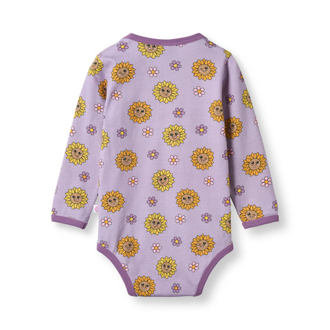 Lys hver dag med vores muntre solsikkeprint, perfekt til at tilføje et strejf af solskin. Småfolks print er tegnet med fokus på glade farver, detaljer og historier. Vores bodyer er en god måde at tilføje personlighed til dit barns garderobe, samtidig med at dit barn kan føle sig komfortabel hele dagen.