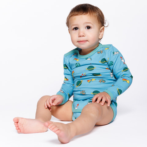 kundeservice@babysam.dkLangærmet baby body med universet produceret i en økologisk og strækbar bomuldsjersey. Denne body er OEKO-TEX Standard 100® certificeret, hvilket betyder at denne body er produceret og testet for skadelige stoffer, så du kan passe på dit barns hud og helbred.Denne body har en normal pasform med kuvertlukning og trykknapper, samt ribkant i hals og ærmer. Småfolks body'er er designet i Danmark med tanke på at kunne holde til utallige eventyrer og leg, og bevare form og farver selv efter gentagen brug. Modellen på billedet er ca. 81 cm lang og har størrelse 80 cm på.