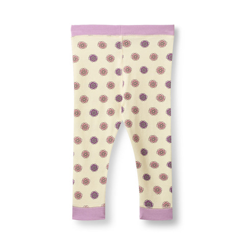 Elstar Leggings - Blomster - Vanilla fra Småfolk er et par skønne leggings, der kombinerer komfort og et charmerende design. De er fremstillet i blød bomuld, som føles behagelig mod huden og giver god bevægelighed til både leg og afslapning. Det fine blomsterprint i lilla og rosa nuancer på den lyse vaniljefarvede bund giver et sødt og legende udtryk, der passer perfekt til både hverdag og festlige lejligheder. Leggingsene har en bred elastikkant i taljen, som sikrer en god og behagelig pasform, så de bliver siddende hvor de skal – også når barnet er aktiv. De lilla kanter ved anklerne giver et ekstra pift til det samlede look. Småfolk er kendt for deres fokus på kvalitet og komfort, og disse leggings er ingen undtagelse. De er nemme at matche med både kjoler, tunikaer og bluser, og kan bruges året rundt – alene eller under andet tøj på kølige dage. Perfekte til børn, der elsker farver og bløde materialer.