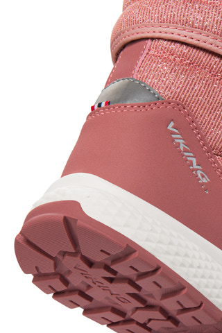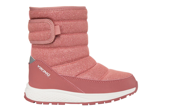 Gør dit barn klar til hverdagens eventyr med en støvle, der er både stilfuld og behagelig. Den iriserende overdel med glimmereffekt har en praktisk slip-on stil, der gør det nemt at få den af og på, og velcrolukningen bagpå holder den godt på plads. Vikings Watershield membran sørger for, at fødderne forbliver tørre under våde forhold, mens et lunt holder kulden væk. En let mellemsål i EVA dæmper hvert skridt på vejen, og en ydersål i gummi giver et godt greb.