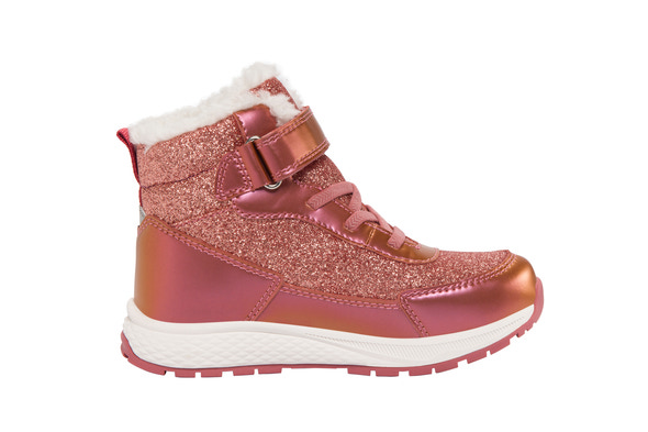 Gør dit barn klar til hverdagens eventyr med en støvle, der er både sjov og behagelig. Den robuste, iriserende overdel med glimmereffekt har elastiske snørebånd og én velcrolukning der sikrer en nem og personlig pasform. Vikings Watershield membran holder fugten ude, mens et varmt for holder kulden væk. En ydersål i gummi giver et solidt greb og plads til fodstropper gør støvlen perfekt til flyverdragten!