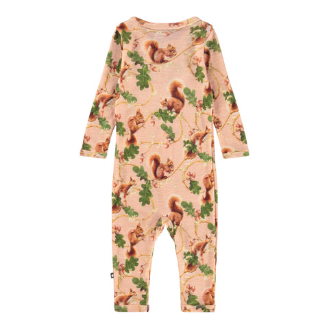 Lun babydragt i blød merinould med lange ærmer og ben. Dragten har trykknapper langs fronten, som gør den nem at tage af og på.