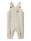 kundeservice@babysam.dkFausto Smækbukser fra Lil' Atelier er et skønt valg til de mindste, når komfort og stil skal gå hånd i hånd. Disse smækbukser er lavet af 100% økologisk bomuld, hvilket sikrer, at de er både bløde og åndbare mod barnets hud. Det klassiske stribede mønster i den lyse nuance Coconut Milk giver et tidløst og elegant udtryk, der passer til både hverdag og festlige lejligheder. Smækbukserne har justerbare seler med knapper, så de kan tilpasses barnets størrelse og vokse med barnet. Den lille brystlomme foran tilføjer et sødt og funktionelt touch, mens knapperne i siden gør det nemt at tage bukserne af og på. De elastiske kanter ved anklerne sikrer en god pasform og holder bukserne på plads, selv når barnet er aktiv. Med Fausto Smækbukser får du et stykke tøj, der kombinerer bæredygtighed, komfort og et charmerende design – perfekt til både leg og hygge.