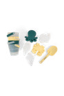 Der er få ting, der slår en dag ved vandet, hvor sandet kilder under små tæer, og legen aldrig tager slut. Med dette charmerende strandsæt fra FILIBABBA bliver enhver tur til stranden - eller et plask i haven - forvandlet til en verden af fantasifuld leg og små opdagelser. Sættet er skabt til nysgerrige, små hænder, der elsker at eksperimentere. De fire små silikonespande er lette at bære og har fine huller i bunden, som gør dem ideelle til vandleg, hvor vandet stille kan løbe igennem. Sammen med den solide skovl og de fem sjove sandforme kan der bygges sandslotte, formes figurer og skabes små historier, der vokser i takt med legen. Alt er fremstillet af blød, men slidstærk silikone, der ligger godt i hånden og kan holde til mange timers leg - og mange somre fyldt med grin, kreativitet og minder ved vandet.