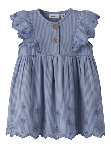 kundeservice@babysam.dkFillian Spencer Kjole fra NAME IT er en charmerende og komfortabel kjole, der passer perfekt til både hverdag og festlige lejligheder. Kjolen er lavet i 100% bomuld, hvilket sikrer, at den er blød mod huden og behagelig at have på hele dagen. Den fine lilla nuance, Purple Impression, giver kjolen et moderne og sødt udtryk, mens de broderede blomsterdetaljer og de elegante flæser på skuldrene tilføjer et ekstra feminint touch. Kjolen har en løs pasform, der giver god bevægelsesfrihed, og den praktiske knaplukning foran gør det nemt at tage kjolen af og på. De små detaljer, som bølget kant forneden og diskrete striber i stoffet, gør kjolen ekstra speciel. Fillian Spencer Kjole er ideel til varme sommerdage, men kan også styles med strømpebukser og en cardigan på køligere dage. En alsidig kjole, der hurtigt bliver en favorit i garderoben.