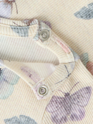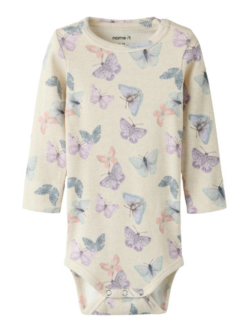 kundeservice@babysam.dkFilua Langærmet Body fra NAME IT er det perfekte valg til de mindste, når komfort og funktionalitet skal gå hånd i hånd. Bodyen er fremstillet i en lækker blanding af økologisk bomuld, modal og elastan, hvilket gør den ekstra blød, åndbar og fleksibel – ideel til babyens sarte hud. Det fine sommerfugleprint i afdæmpede pastelfarver giver et sødt og legende udtryk, der passer til både hverdag og festlige lejligheder. De lange ærmer sørger for, at barnet holdes lunt, mens den ribbede struktur tilføjer ekstra komfort og bevægelsesfrihed. Bodyen har praktiske trykknapper i bunden, så det er nemt og hurtigt at skifte ble, og den elastiske halsudskæring gør påklædningen let og behagelig. Med fokus på både kvalitet og design er denne body et sikkert hit i garderoben og kan nemt kombineres med bukser, leggings eller en lille nederdel for et komplet look. NAME IT er kendt for deres børnetøj i høj kvalitet, og denne body er ingen undtagelse – den er skabt til at holde til hverdagens mange eventyr og vask efter vask.