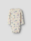Filua Langærmet Body fra NAME IT er det perfekte valg til de mindste, når komfort og funktionalitet skal gå hånd i hånd. Bodyen er fremstillet i en lækker blanding af økologisk bomuld, modal og elastan, hvilket gør den ekstra blød, åndbar og fleksibel – ideel til babyens sarte hud. Det fine sommerfugleprint i afdæmpede pastelfarver giver et sødt og legende udtryk, der passer til både hverdag og festlige lejligheder. De lange ærmer sørger for, at barnet holdes lunt, mens den ribbede struktur tilføjer ekstra komfort og bevægelsesfrihed. Bodyen har praktiske trykknapper i bunden, så det er nemt og hurtigt at skifte ble, og den elastiske halsudskæring gør påklædningen let og behagelig. Med fokus på både kvalitet og design er denne body et sikkert hit i garderoben og kan nemt kombineres med bukser, leggings eller en lille nederdel for et komplet look. NAME IT er kendt for deres børnetøj i høj kvalitet, og denne body er ingen undtagelse – den er skabt til at holde til hverdagens mange eventyr og vask efter vask.