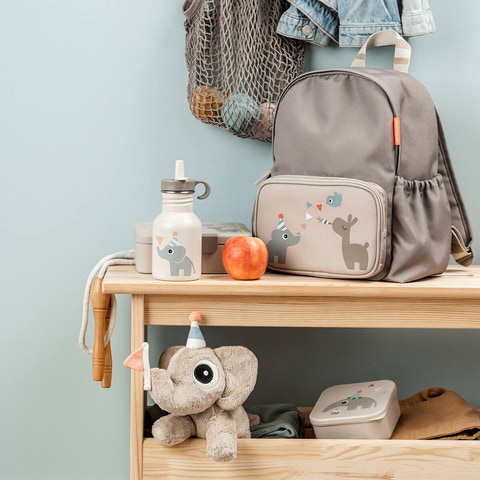 Done By Deer Flaske rustfrit stål Celebration 350 ml er den ideelle drikkeflaske til børn, der både ønsker funktionalitet og et sødt design. Flasken er fremstillet i robust rustfrit stål, hvilket gør den ekstra holdbar og sikrer, at den ikke tager smag fra indholdet. Det festlige motiv og de bløde farver gør flasken til en favorit blandt de mindste, og den passer perfekt i tasken til børnehave, skole eller udflugter. Låget er udstyret med en smart drikketud med skjult sugerør, som gør det nemt for barnet selv at drikke, og det praktiske håndtag gør flasken let at bære eller hænge på en taske. Flasken er designet med fokus på sikkerhed og brugervenlighed, og den er fri for skadelige stoffer som BPA og phthalater. Den kan rumme 350 ml væske, hvilket er en passende mængde til både vand, juice eller mælk. Ø7 x H 15 cm.