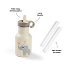 kundeservice@babysam.dkDone By Deer Flaske rustfrit stål Celebration 350 ml er den ideelle drikkeflaske til børn, der både ønsker funktionalitet og et sødt design. Flasken er fremstillet i robust rustfrit stål, hvilket gør den ekstra holdbar og sikrer, at den ikke tager smag fra indholdet. Det festlige motiv og de bløde farver gør flasken til en favorit blandt de mindste, og den passer perfekt i tasken til børnehave, skole eller udflugter. Låget er udstyret med en smart drikketud med skjult sugerør, som gør det nemt for barnet selv at drikke, og det praktiske håndtag gør flasken let at bære eller hænge på en taske. Flasken er designet med fokus på sikkerhed og brugervenlighed, og den er fri for skadelige stoffer som BPA og phthalater. Den kan rumme 350 ml væske, hvilket er en passende mængde til både vand, juice eller mælk. Ø7 x H 15 cm.