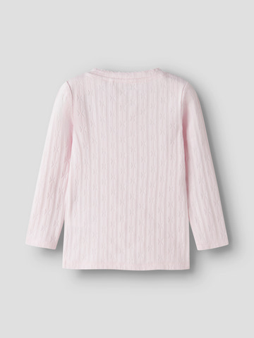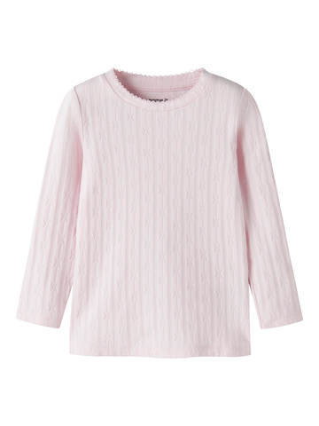 kundeservice@babysam.dkFly Slim Bluse fra NAME IT er en skøn basisbluse til garderoben, der kombinerer komfort og stil på bedste vis. Blusen er fremstillet i en blød og strækbar bomuldsblanding, som sikrer, at dit barn kan bevæge sig frit hele dagen. Den smalle pasform og de lange ærmer gør den ideel både som et varmt lag under en cardigan eller alene på kølige dage. Den fine ribstruktur og den sarte rosa farve giver blusen et feminint og klassisk udtryk, der passer til både hverdag og festlige lejligheder. Halsudskæringen har en diskret bølgekant, som tilføjer et ekstra sødt touch. Med sin høje andel af bomuld er blusen åndbar og behagelig mod huden, mens elastanen sikrer, at den holder formen vask efter vask. Perfekt til aktive børn, der ønsker både komfort og et pænt look.