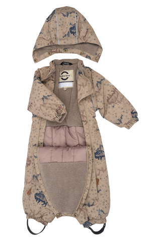 Mikk-line baby flyverdragt med et sejt print af vinterlandskab og skovens dyr. I denne lækre flyverdragt kan barnet lege og udforske naturen under den åbne himmel i alt slags vejr i løbet af de kolde og våde efterår- og vintermåneder. Flyverdragten er lavet af genanvendt polyester og polstret med polyesterfyld. Hætten og overkroppen har blødt fleece foer, hvorimod ærmerne og benene har en glat og gnidningsfri indvendig overflade. Vi har anvendt Solution Dye til farvning af det glatte for, da det bl.a. mindsker forbruget af vand i produktionen. Den er naturligvis også fluorfri med BIONIC-FINISH® ECO imprægnering.