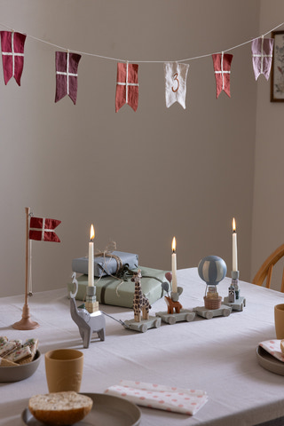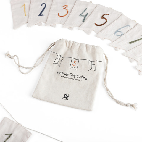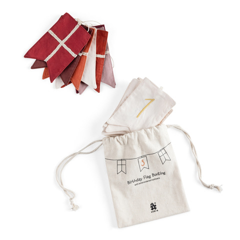 Fødselsdage er noget særligt, og den søde flagranke er perfekt til at fejre alle fødselarer i familien. Flagranken består af 6 dannebrogsflag fremstillet af økologisk bomuld i afstemte røde nuancer samt 11 flag med tallene fra 0 til 9 broderet på. Der er et ekstra 1-tal i den medfølgende opbevaringspose, så 11-års fødselsdagen også kan fejres. Skab en mindeværdig tradition ved at hænge flagranken op til alle familiens fødselsdage og brug den fine opbevaringspose til at gemme ranken i imellem højtiderne. Flagranken er en del af Sebras 20-års fødselsdagskollektion, der også består af et bordflag og et fødselsdagstog med lys og udskiftelige tal. Den er designet i Danmark, og en skøn barsels- eller dåbsgave, der kan bringe glæde i mange år.