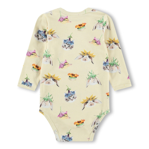 Foss Langærmet Body - Floral Fun Baby fra Molo er en skøn body til de mindste, der kombinerer komfort og legende design. Bodyen er fremstillet i blød bomuld, som føles behagelig mod barnets hud og sikrer god bevægelsesfrihed hele dagen. Det charmerende print med blomster og søde dyremotiver gør bodyen ekstra fin og oplagt til både hverdag og særlige lejligheder. De praktiske trykknapper på skulderen og mellem benene gør det nemt at klæde barnet på og af, samt lette bleskift. Perfekt til forældre, der ønsker både funktionalitet og et sødt udtryk til deres barn.