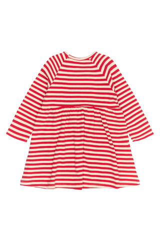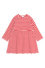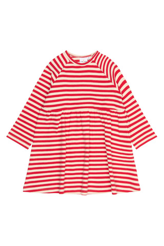 Denne kjole fra THE NEW Siblings kombinerer komfort med et legende og klassisk look. Den har et tidløst stribet mønster og en løs pasform med en rynket nederdel, der giver masser af bevægelsesfrihed. De lange ærmer og det bløde stof gør den ideel til både hverdagsbrug og hyggelige lejligheder.