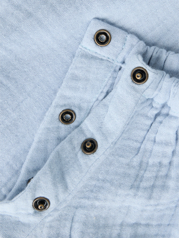 Fulina Smækbukser fra Lil' Atelier er et skønt valg til de mindste, når komfort og stil skal gå hånd i hånd. Disse smækbukser er lavet i 100% økologisk bomuld, hvilket sikrer, at de er både bløde og åndbare mod barnets hud. Den lette og luftige kvalitet gør dem perfekte til både leg og afslapning, og den smukke Zen Blue farve giver et roligt og moderne udtryk. Smækbukserne har justerbare stropper med knapper, så de kan tilpasses barnets størrelse, og de små lommer foran med knaplukning tilføjer et sødt og praktisk element. Buksebenene afsluttes med elastik, så de sidder godt uden at stramme. Fulina Smækbukser er ideelle til både hverdag og festlige lejligheder, og kan nemt kombineres med en body eller t-shirt under.