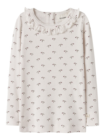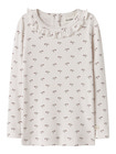 Sæt det perfekte outfit sammen til dit barn med kvalitetsstilarter til hverdagsbrug, og skab et behageligt og trendy look. Jersey er et let og elastisk stof med en blød overflade og inderside, der giver en behagelig fornemmelse og bevægelsesfrihed. - Produkttype: Top - Halsudskæring: Rund halsudskæring - Ærmer: Lange ærmer (L/S) - Lukning: Knaplukning - Ekstra detaljer: Flæser, mærke - Print: Print gentaget over hele produktets overflade - Pasform: Slim Fit