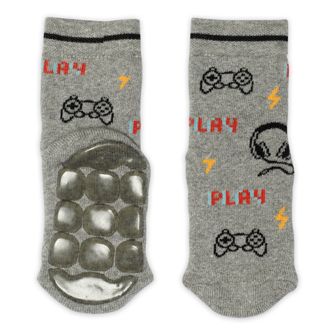 Anti-slip strømper i bomuld fra MELTON. Strømperne har indvendig frotté og er dekoreret med et seje gaming motiver. Strømperne har skridsikre knopper under sålen.