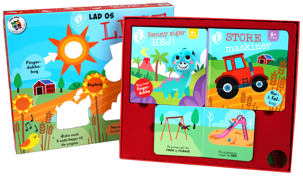 Med denne fine gaveæsker får du hele tre papbøger til de yngste børn. Æsken indeholder en papbog, en papbog med fingerdukke og en rør og føl-bog. Selve æsken med sine søde tegninger gemmer også en søge-leg.