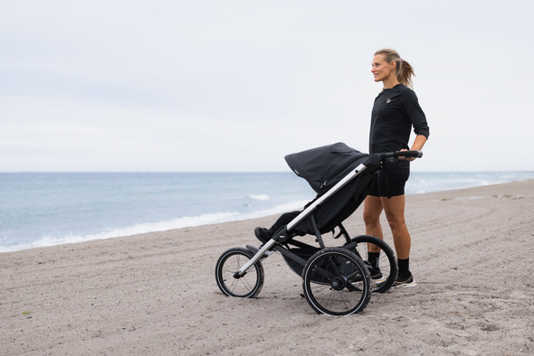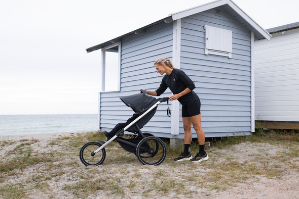 Thule Glide 3 er designet specifikt til løb. Med store 18" baghjul, et fast 16" forhjul og generøs plads til dine skridt, får du både fart og frihed. Den integrerede håndbremse giver dig fuld kontrol, selv i kuperet terræn, mens den opdaterede parkeringsbremse gør det nemt at holde pauser undervejs.