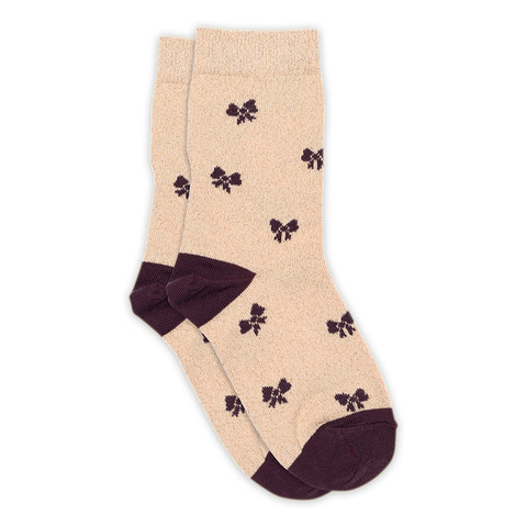Glimmerstrømper i bomuld fra MELTON. Strømperne er dekoreret med små lilla sløjfer samt hæl og tå i kontrastfarver.