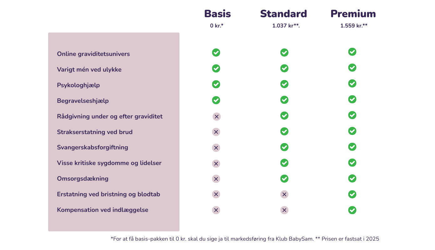 Som medlem af Klub BabySam kan du få graviditetsforsikringen basis til 0 kr. *For at blive medlem af Klub BabySam skal du sige ja til markedsføring fra BabySam.