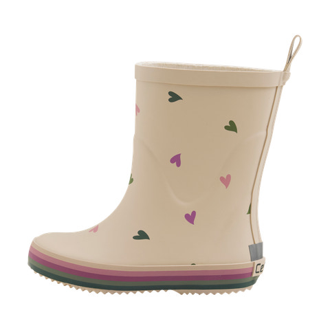 Gummistøvler med all over print fra CeLaVi. Gummistøvlerne er lavet i naturgummi og har en refleksstribe bagpå. Der anbefales et voksetillæg på 1 1/2 cm.