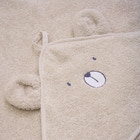 Dette håndklæde med hætte er lavet af blød frotté, hvilket gør det perfekt til at tørre og holde dit barn varmt efter badet. Den praktiske hætte sikrer, at barnets hoved også holdes varmt og tørt, mens den bløde frotté føles behagelig mod huden.