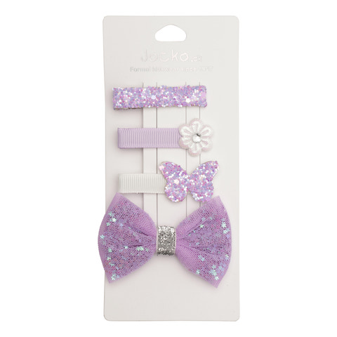 Pakke med 4 mix spænder i lilla tema